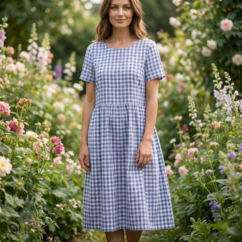 Bombažna tkanina Check sky