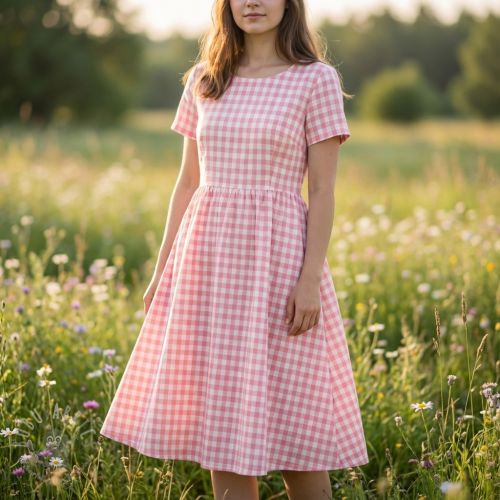 Bombažna tkanina Check pink