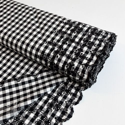 Bombažna tkanina Checks black white 1-side border