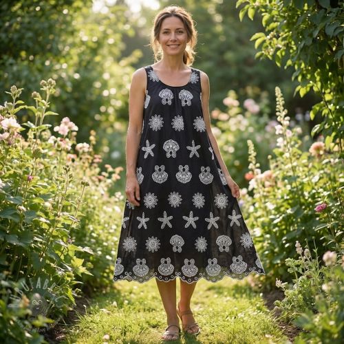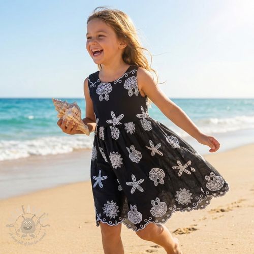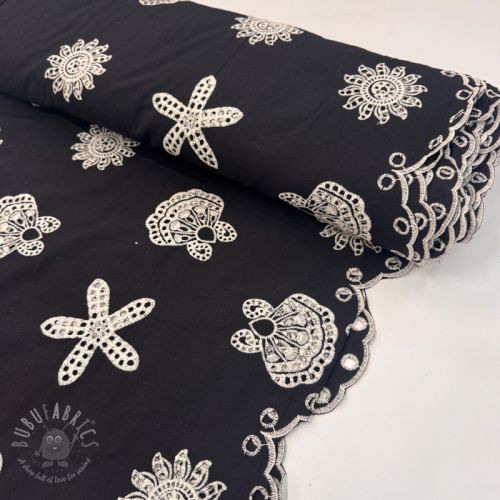 Bombažna tkanina EMBROIDERY Sea ornaments black