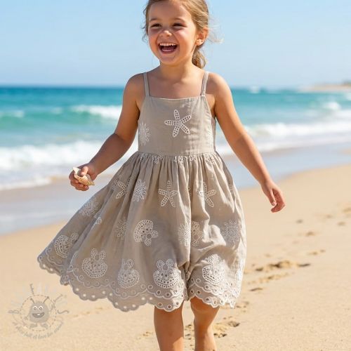 Bombažna tkanina EMBROIDERY Sea ornaments natural