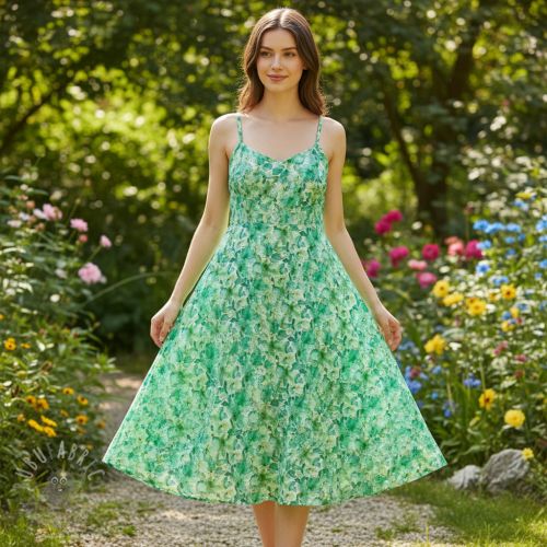 Bombažna tkanina EMBROIDERY Viola green digital print
