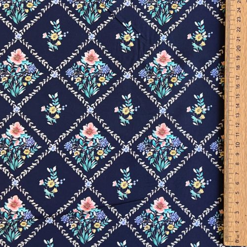 Bombažna tkanina Flowers Tara navy design A digital print