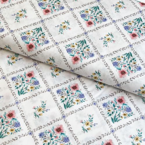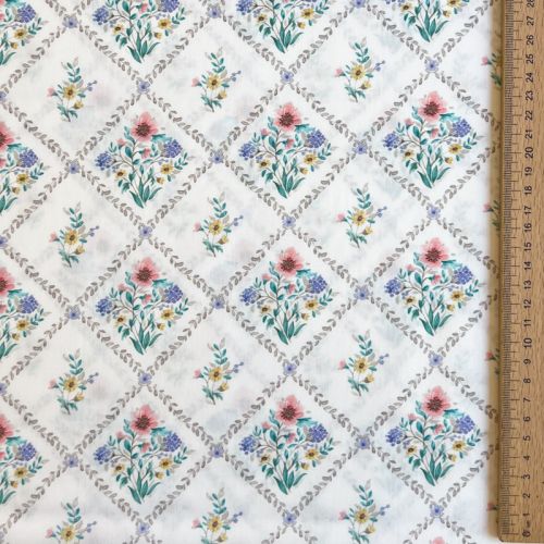 Bombažna tkanina Flowers Tara off white design A digital print