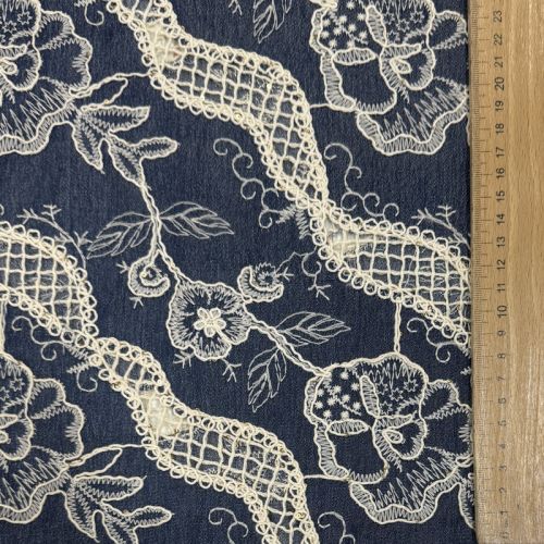 Bombažna tkanina JEANS EMBROIDERY Flora design D