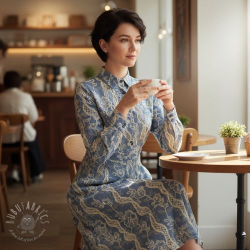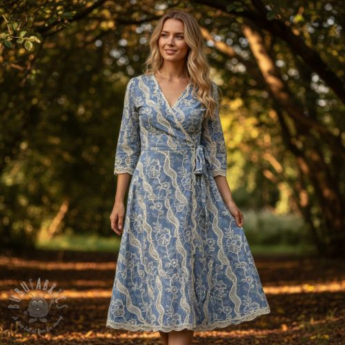 Bombažna tkanina JEANS EMBROIDERY Flora design B