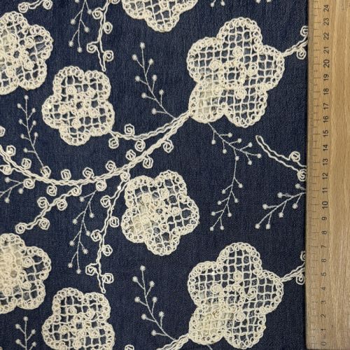Bombažna tkanina JEANS EMBROIDERY Flora design D