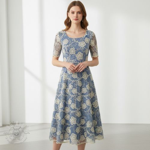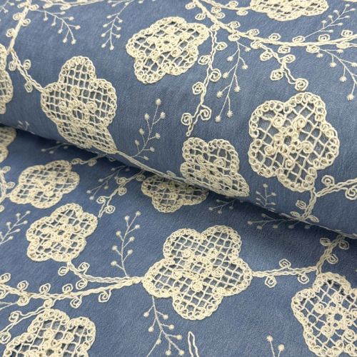 Bombažna tkanina JEANS EMBROIDERY Flora design D