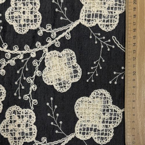 Bombažna tkanina JEANS EMBROIDERY Flora design D
