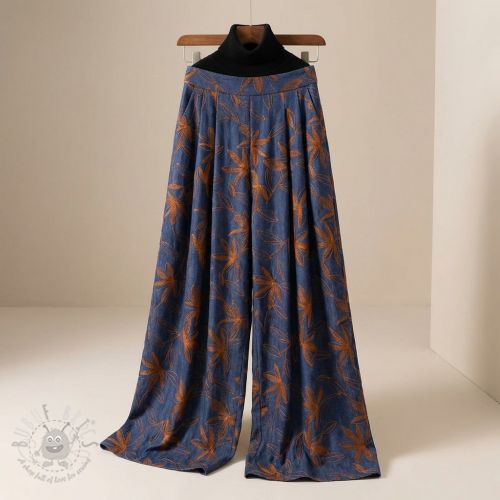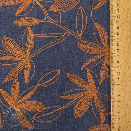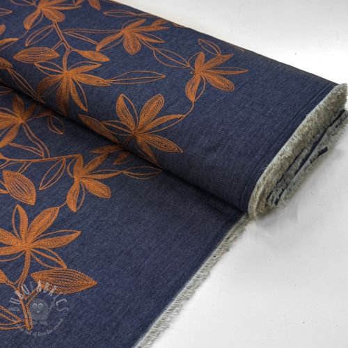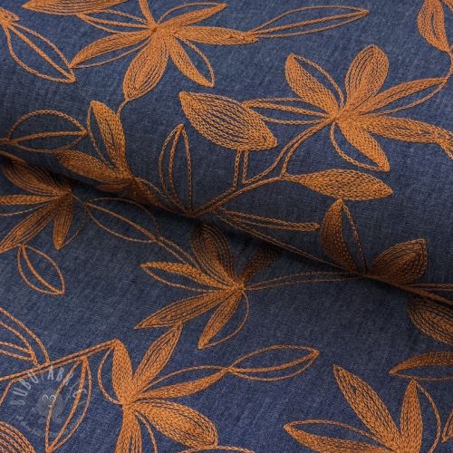 Bombažna tkanina JEANS Embroidery Flowers camel
