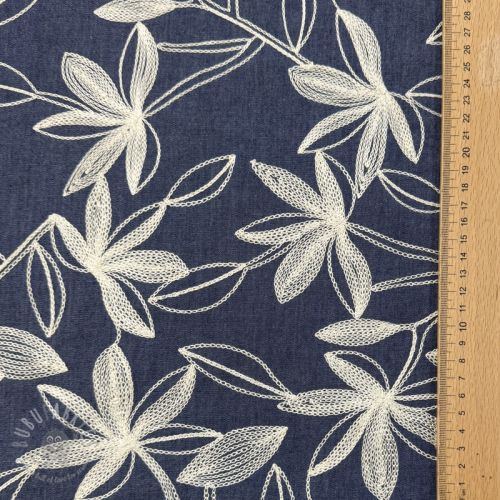 Bombažna tkanina JEANS Embroidery Flowers white