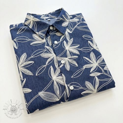 Bombažna tkanina VOILE EMBROIDERY Flowers navy