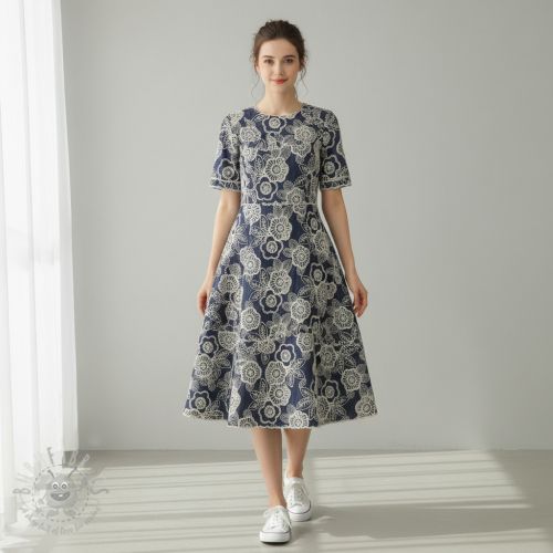 Bombažna tkanina JEANS EMBROIDERY Niva design A