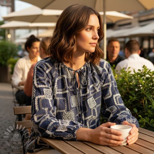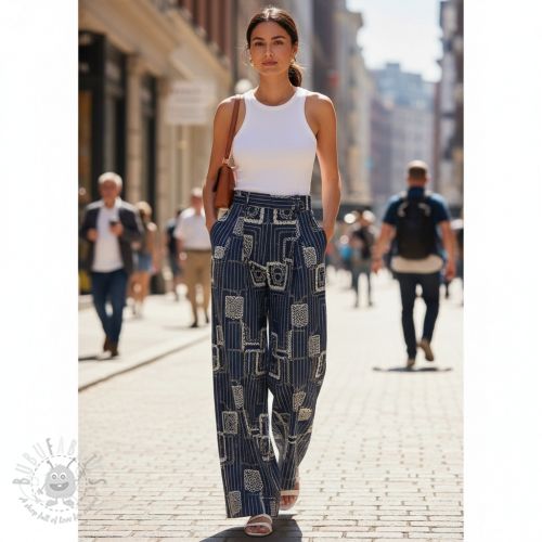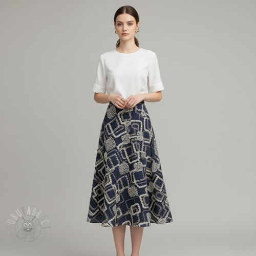 Bombažna tkanina JEANS EMBROIDERY Square dark blue
