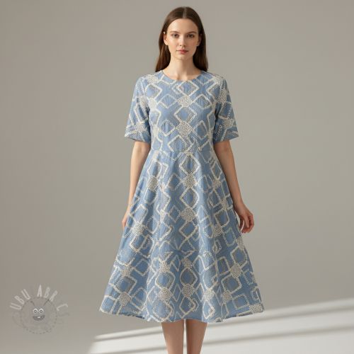 Bombažna tkanina JEANS EMBROIDERY Square light blue