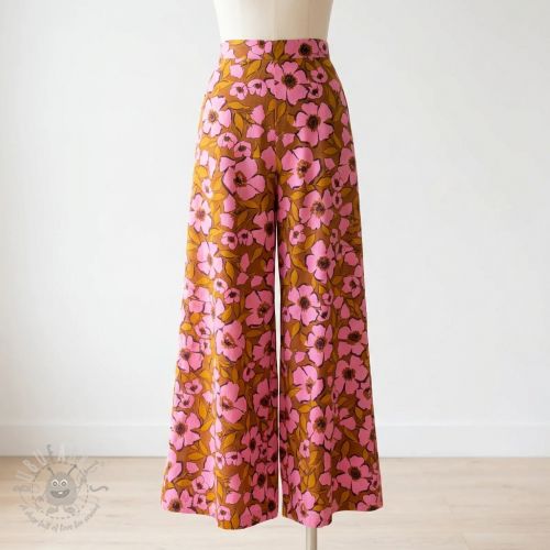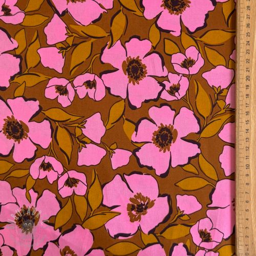 Bombažna tkanina SATIN Flower Kala caramel