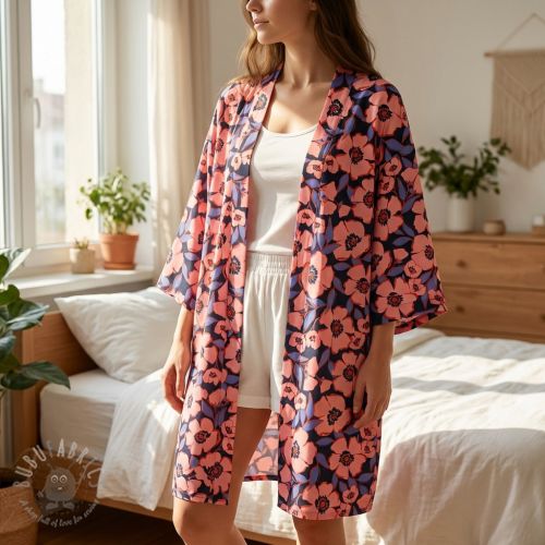 Bombažna tkanina SATIN Flower Kala navy