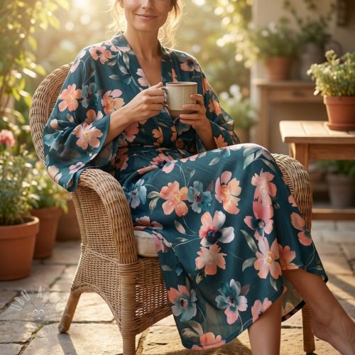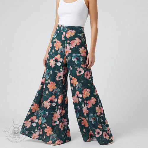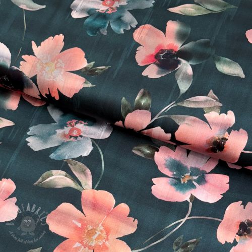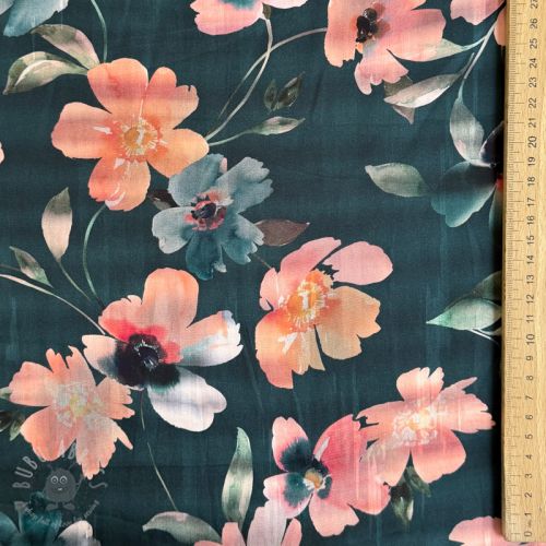 Bombažna tkanina SATIN Penny flower petrol digital print