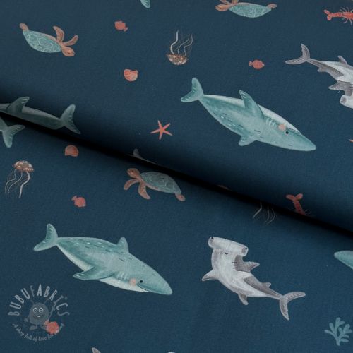 Bombažna tkanina Sea life petrol digital print