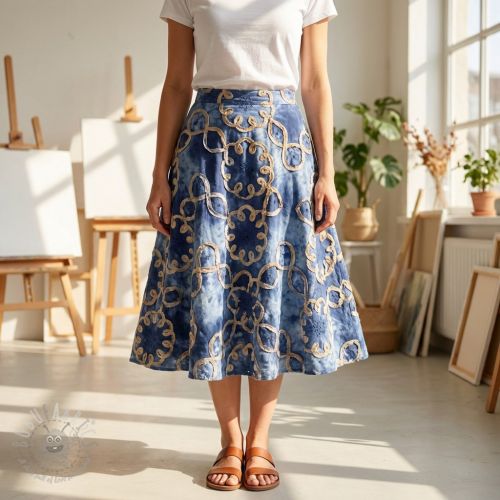 Bombažna tkanina TIE DYE EMBROIDERY Elise tape design C
