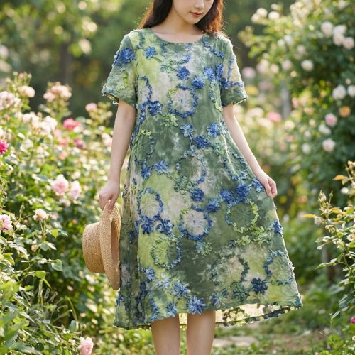Bombažna tkanina TIE DYE EMBROIDERY Eva tape design E