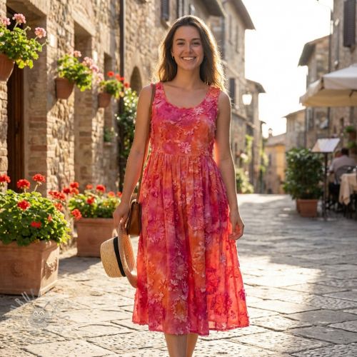 Bombažna tkanina TIE DYE EMBROIDERY Eva tape design F