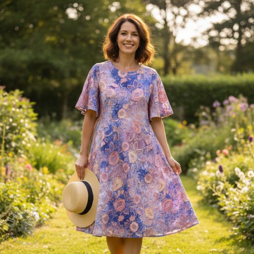 Bombažna tkanina TIE DYE EMBROIDERY Flora design A