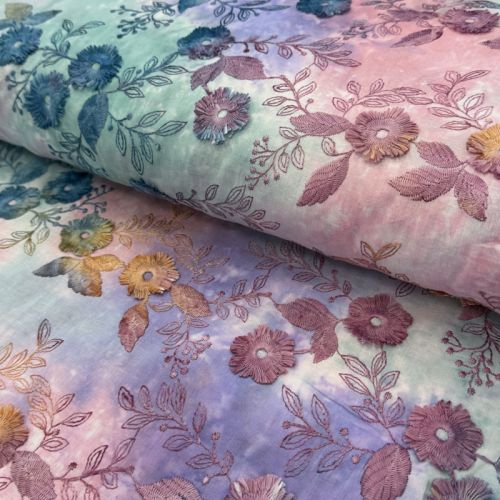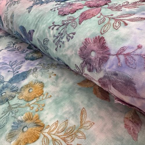 Bombažna tkanina TIE DYE EMBROIDERY Poppy design K