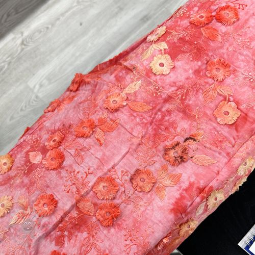 Bombažna tkanina TIE DYE EMBROIDERY Poppy design K 2nd class