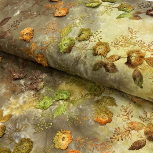 Bombažna tkanina TIE DYE EMBROIDERY Poppy design Q