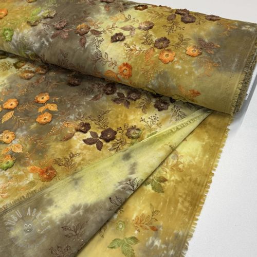 Bombažna tkanina TIE DYE EMBROIDERY Poppy design K