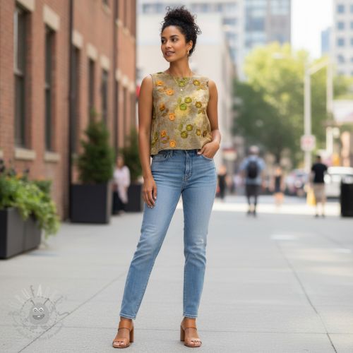 Bombažna tkanina TIE DYE EMBROIDERY Poppy design E