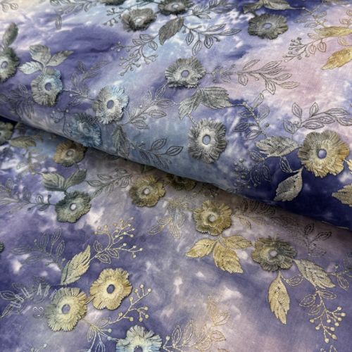 Bombažna tkanina TIE DYE EMBROIDERY Poppy design Q