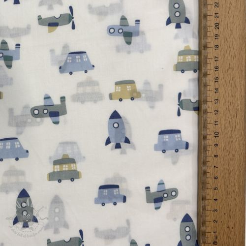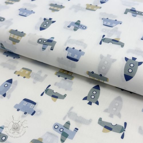 Bombažna tkanina Vehicles white