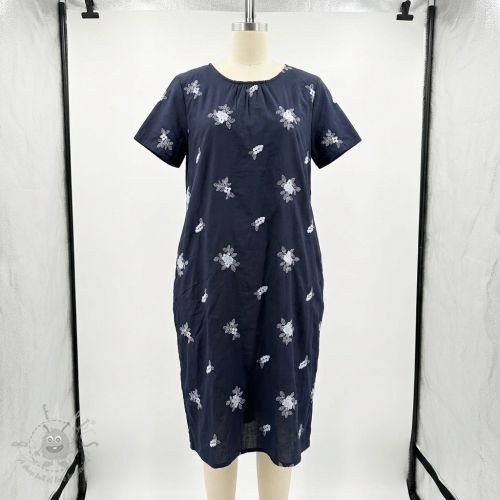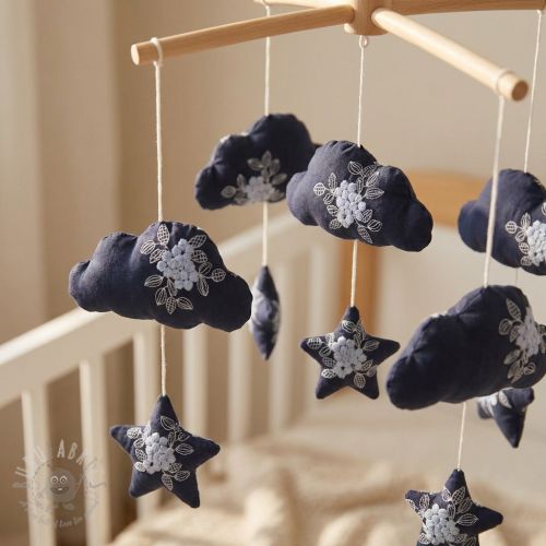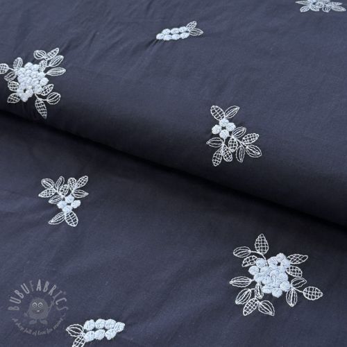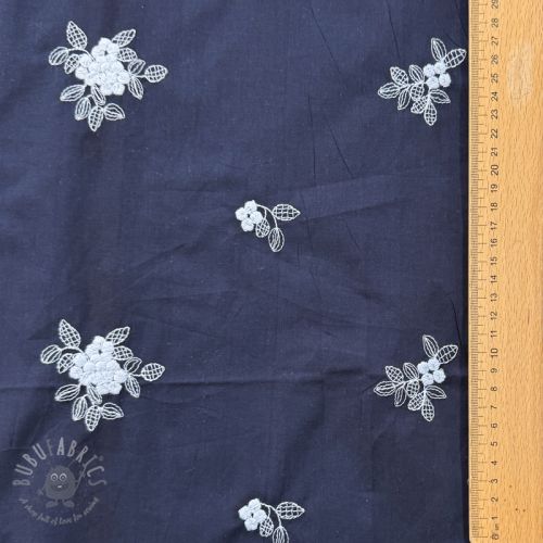 Bombažna tkanina VOILE EMBROIDERY Flowers navy