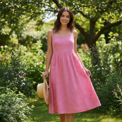 Bombažna tkanina VOILE EMBROIDERY Vintage fuchsia