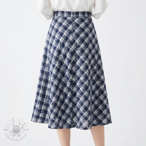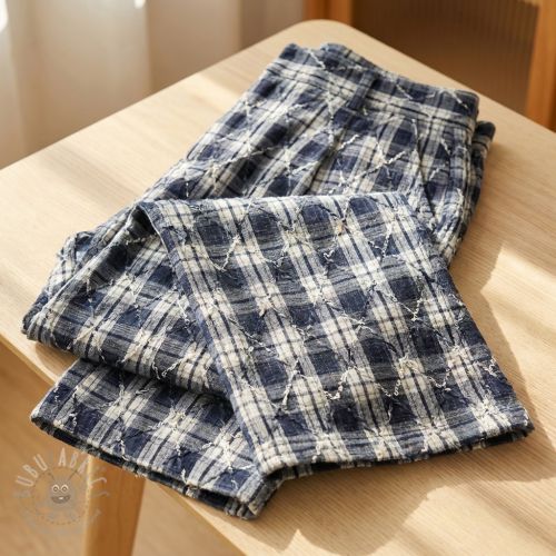 Bombažna tkanina YARN DYED BRUSHED Check EMBROIDERY navy