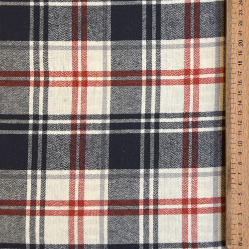 Bombažna tkanina YARN DYED CHECK BRUSHED navy brick