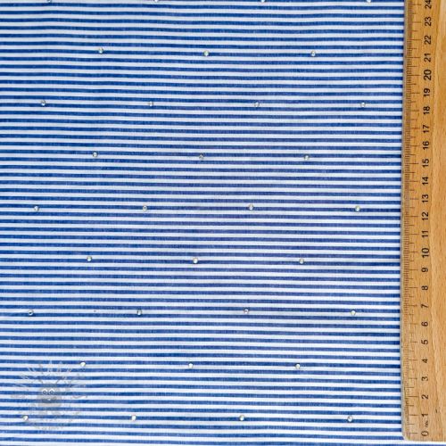 Bombažna tkanina YARN DYED Stripes with studs blue