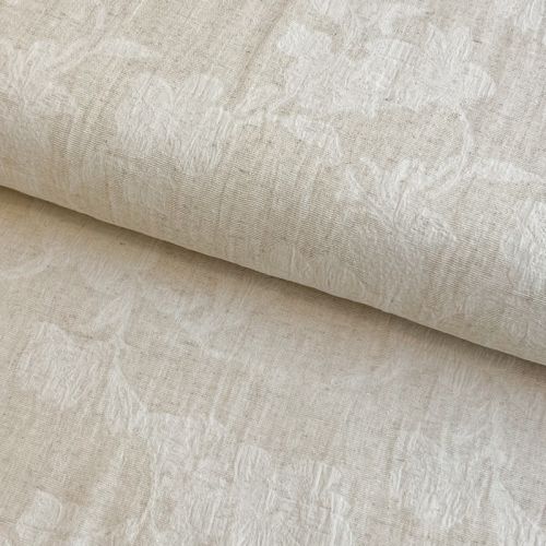 Bombažna tkanina z lanom JACQUARD Flowers natural