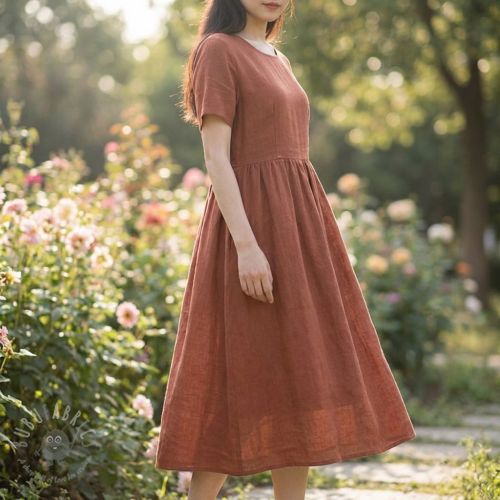 Bombažna tkanina z lanom brick