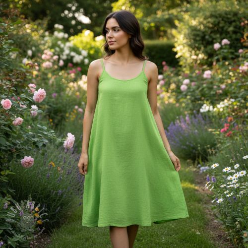 Bombažna tkanina z lanom apple green