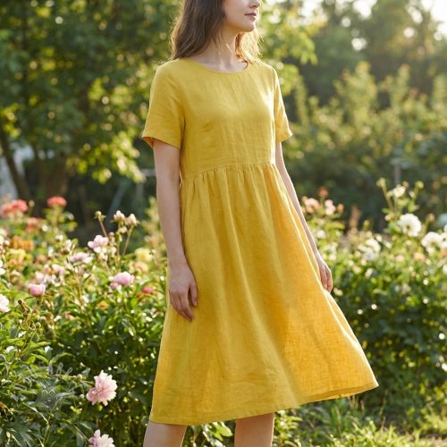 Bombažna tkanina z lanom PREMIUM dawn pink