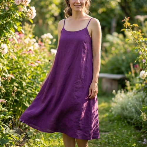 Bombažna tkanina z lanom dark lilac