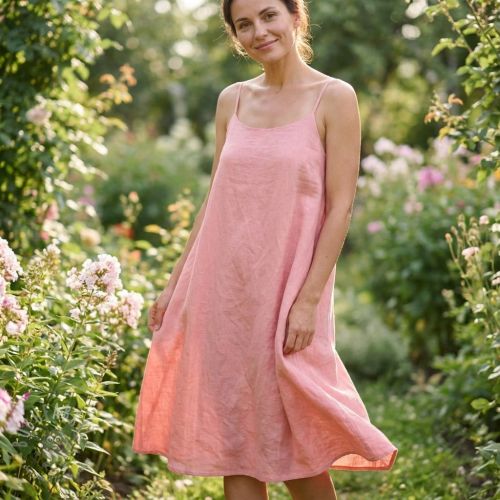 Bombažna tkanina z lanom salmon
