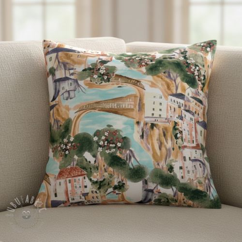 Dekorativno blago Houses ecru digital print
