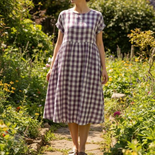 Dvojna gaza/muslin Double sided CHECKS MINI grape