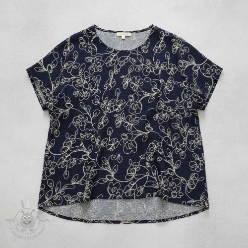 Dvojna gaza/muslin EMBROIDERY Climbing flowers navy