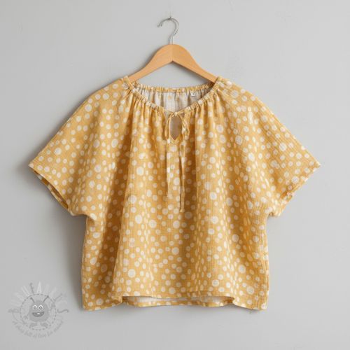 Dvojna gaza/muslin JACQUARD Dots dark yellow
