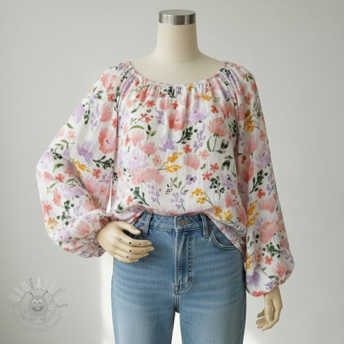 Dvoslojna gaza/muslin Big summer flowers digital print